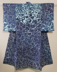 "I am drawn to the simplicity of the kimono silhouette and to the complexity of the traditions surrounding it," she says. "I often create background stories relating to a piece as I am working, but I expect viewers to create their own stories as they connect with or interpret my work."