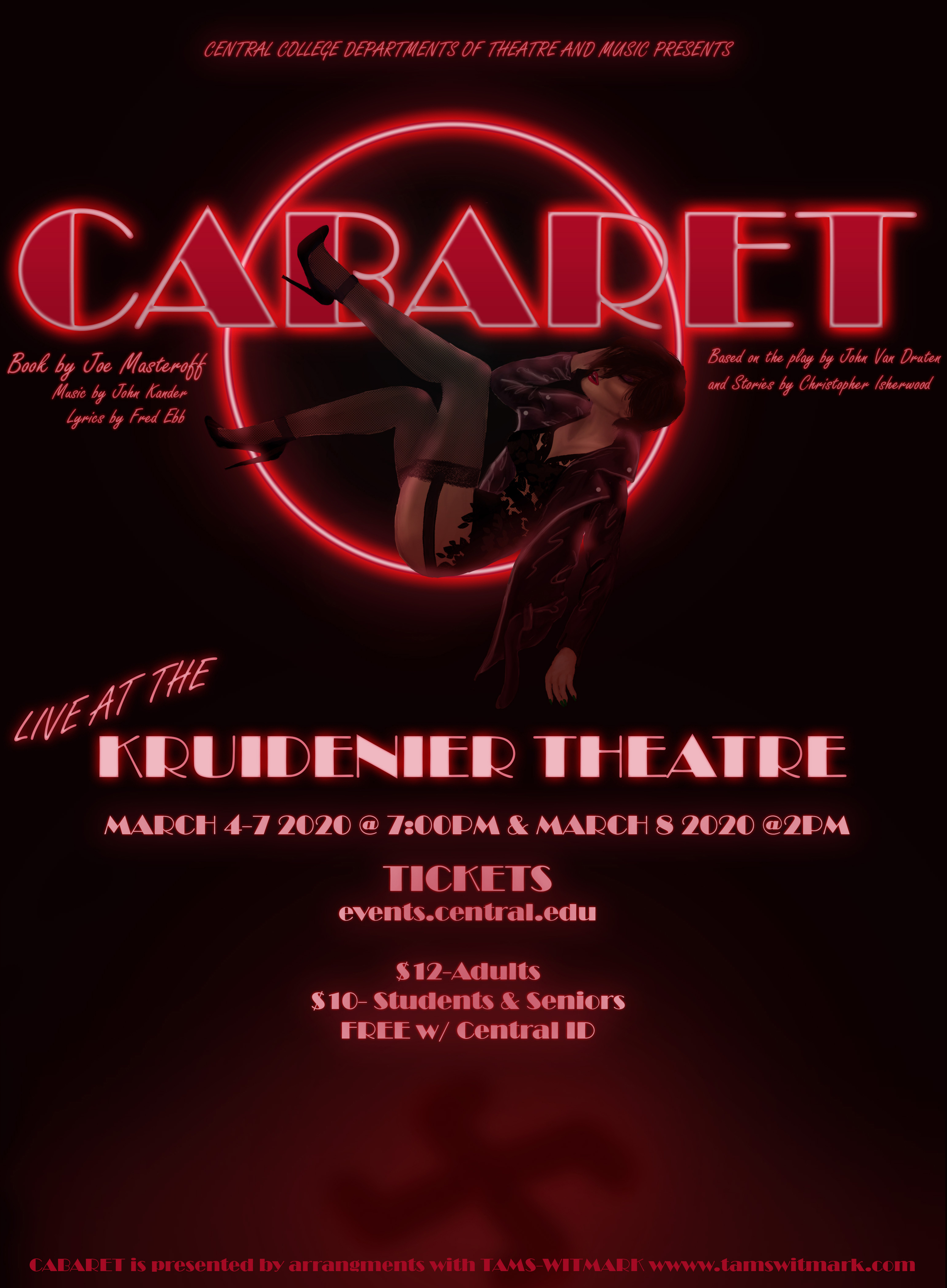 Pella, IA (02/20/2020) — Central College's theatre department will present Kander and Ebb's iconic musical "Cabaret" from March 4-8 in the Kruidenier Theatre.